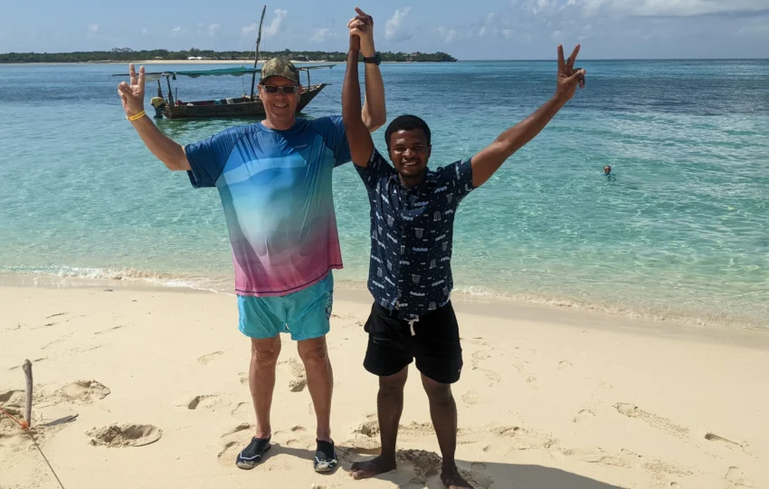 Diese unvergessliche Tagestour beginnt mit einer traditionellen Dhau-Fahrt von Fumba aus, wo Sie die wunderschöne Küstenlinie von Sansibar erkunden. Mit Harry an Ihrer Seite werden Sie versteckte Lagunen und traumhafte Sandbänke entdecken, wo Sie schnorcheln und die farbenfrohe Unterwasserwelt erkunden können. Freuen Sie sich auf einen Stopp an der berühmten Mangrovenlagune und einen Besuch der Insel Kwale, wo Sie ein köstliches Meeresfrüchte-BBQ genießen werden. Harry wird Ihnen nicht nur die Naturwunder zeigen, sondern auch spannende Geschichten über die Insel und das lokale Leben erzählen.